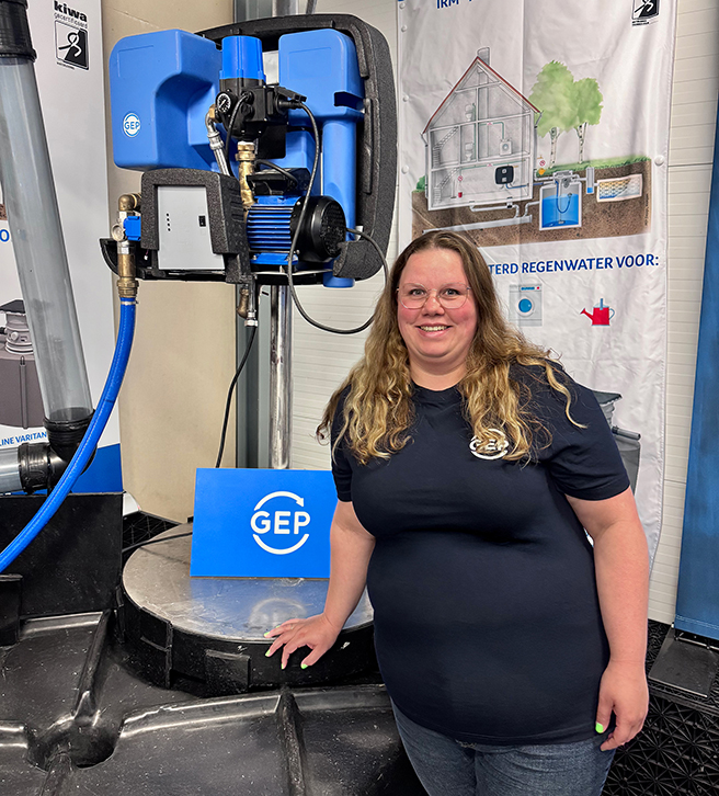Riet hoort bij water en zeker bij GEP. Riet was één van de allereerste medewerkers bij GEP en nog steeds werkzaam op financiën. Ondanks het feit dat ze haar pensioengerechtigde leeftijd reeds lang heeft bereikt, (zou je niet zeggen hé) blijft ze gewoon lekker bij GEP werkzaam. Haar wasmachine draait overigens op regenwater dankzij één van de eerste prototypes van de GEP Watermanager.