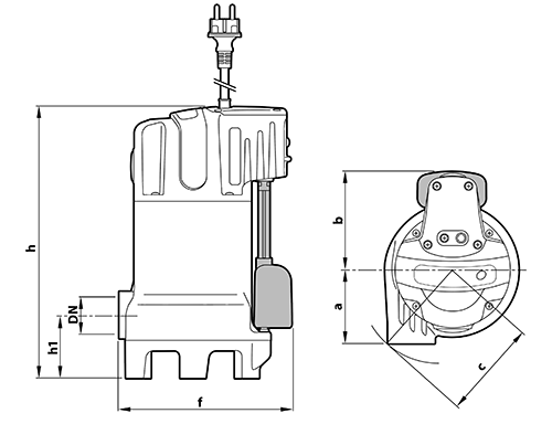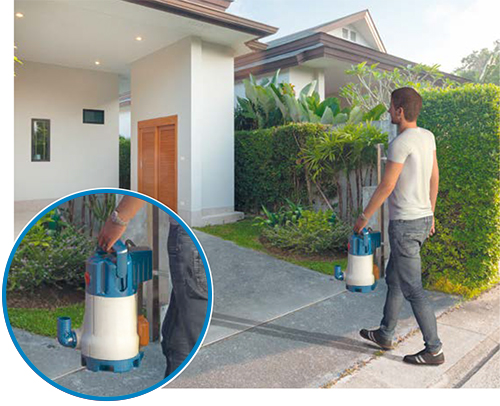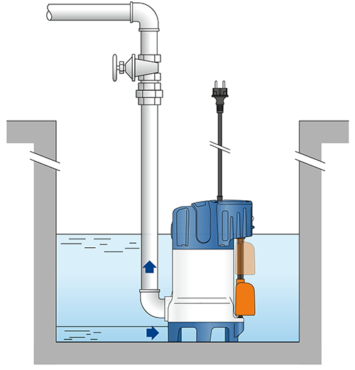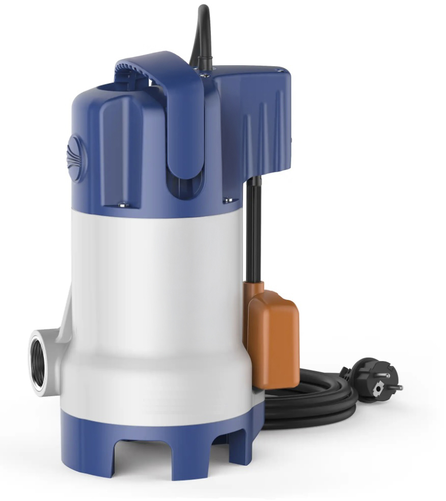 Dit model dompelpomp heeft een vlotterschakelaar die niet enkel automatisch maar ook manueel geschakeld kan worden zodat de pomp continue kan draaien. De dompelpomp wordt geleverd met een stroomkabel met een lengte van 5 m en euro stekker voor 230V contactdozen met rand aarde.