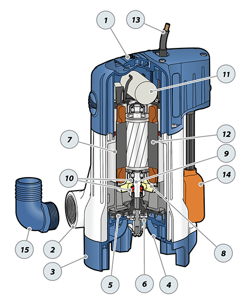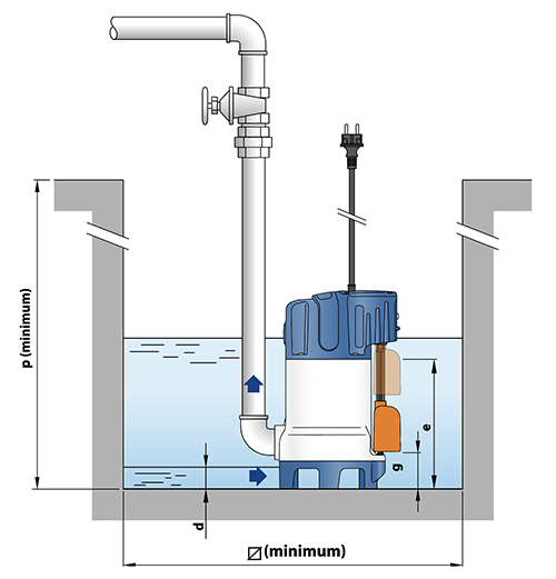 Bovendien zijn deze dompelpompen uitgerust met een zeer compacte, geïntegreerde magnetische vlotterschakelaar die ervoor zorgt dat de waterpomp zelfstandig kan draaien, gestuurd op basis van het waterpeil dat de vlotterschakelaar activeert. Dankzij de verticale beweging die de vlotterschakelaar maakt kan deze dompelpomp in zeer kleine ruimtes toegepast worden. Dat wil zeggen in pompschachten met 22 cm ruimte rondom de pomp.